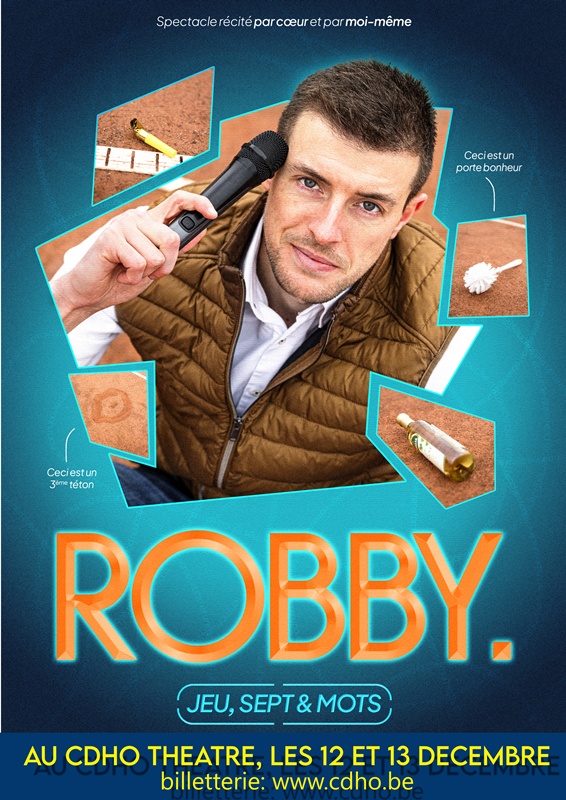 Robby présente son premier spectacle : un one-man-show mêlant absurde, autodérision et humour belge décomplexé.